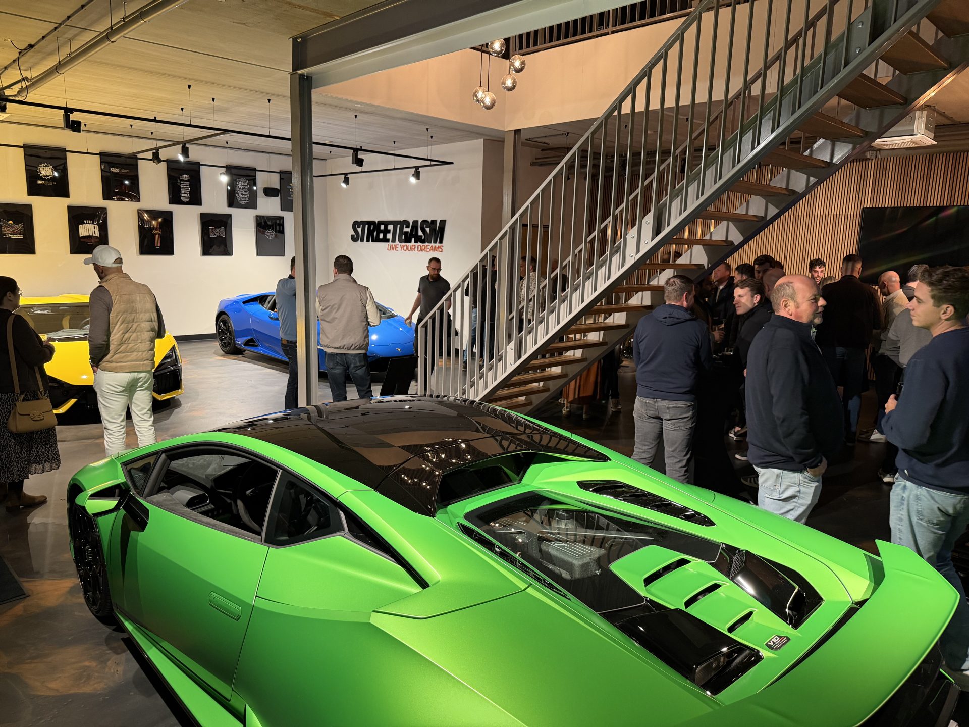 Tijdens de Social Night werden twee Lamborghini’s gepresenteerd door Puur Leusden: de Tecnica in de kleur Verde Selvans Matte en de Revuelto in de kleur Giallo Countach. Daarnaast kwam eigenaar Pieter Schoonderbeek zelf ook aan in een megadikke Lamborghini Revuelto in de kleur Viola SE30 Matte. Het plaatje werd compleet gemaakt door de nieuwe aanwinst van Maurice, zijn Huracan Evo RWD in Blu Eleos.